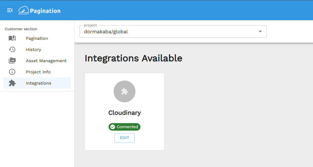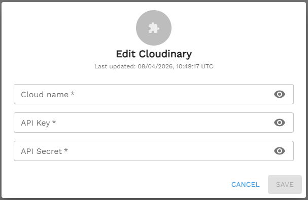 The Cloudinary integration allows you to connect your project to your Cloudinary account using API credentials.